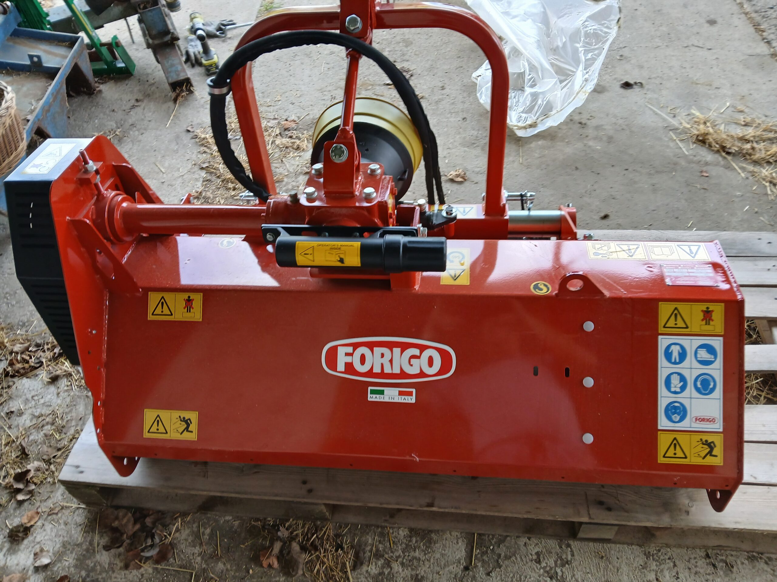 Mulčovač Forigo – stroj je možné využít za malotraktorem. Pohon je kardanovou hřídelí 540 ot./min. Kardan součástí dodávky. Pracovní záběr 130 cm. Stroj má boční posuv.